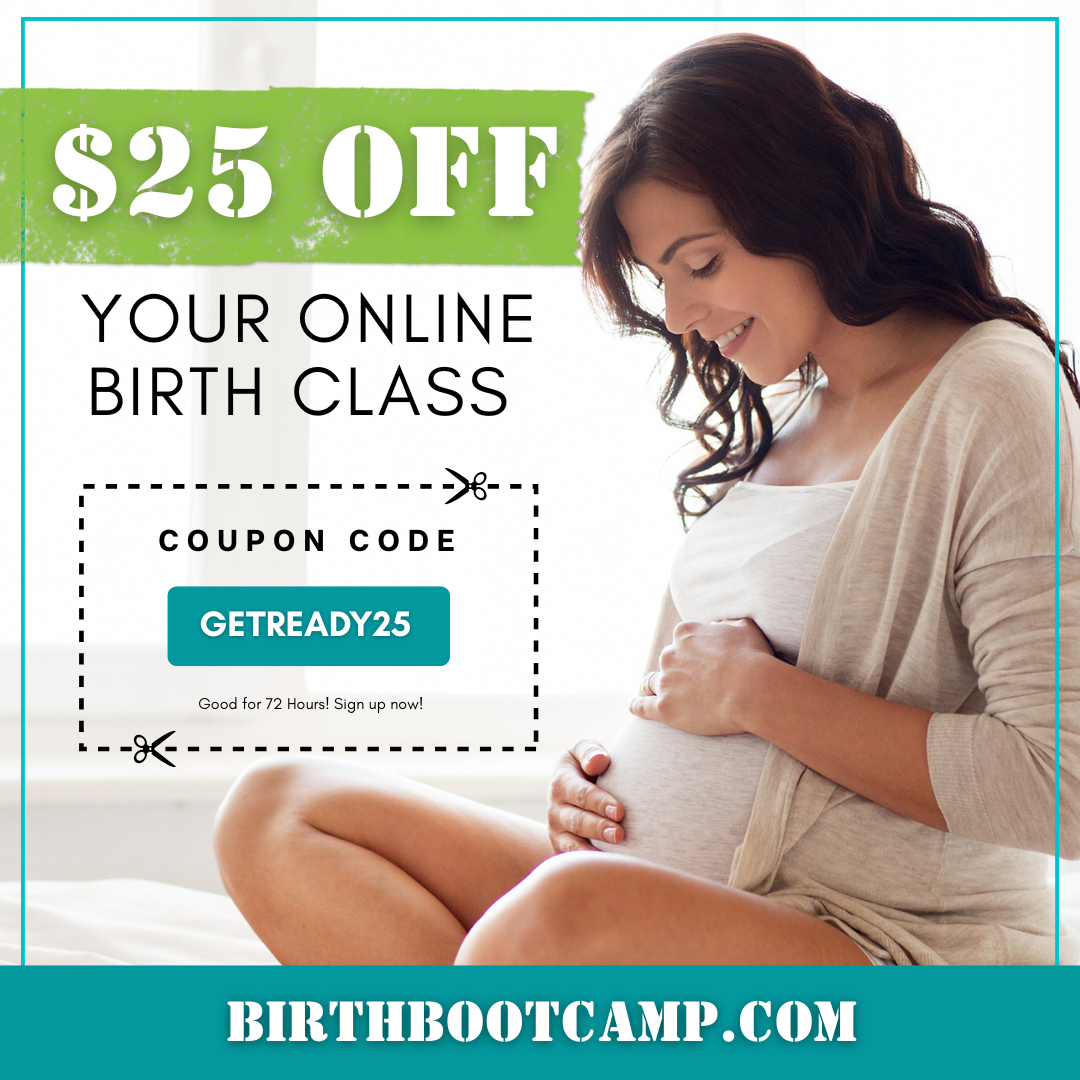 Your exclusive coupon code for $25 off one of our award-winning online birth classes is below: